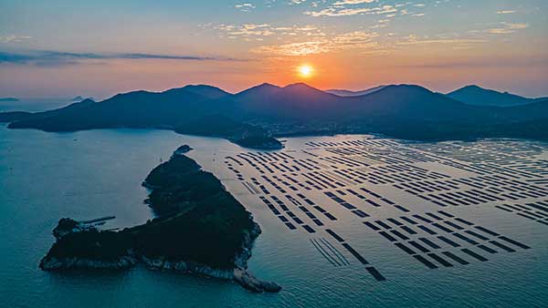 장도 뒤로 청산도가 보인다. 청산도는 전복 양식장으로 유명하다.