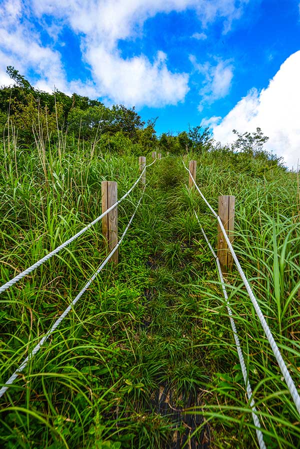 가파른 사면을 올라 능선에 이르면 초지대가 펼쳐진다.